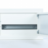 Montasjetype: Innfelt Farge: Hvit (fargekode RAL 9010) Dimensjoner (mm): H=411, B=438, D=110/80 Antall modulplasser: 36 Material: Stål
